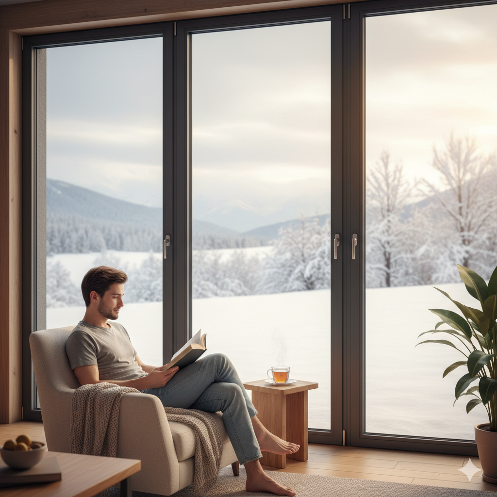斷熱鋁窗的厲害就在這裡——它在鋁框中間加了一層「隔熱橋」(像是絕緣墊),讓熱跑不過去,冷也滲不進來。冬天室內的暖氣不會被偷走,夏天太陽的熱氣也進不來。